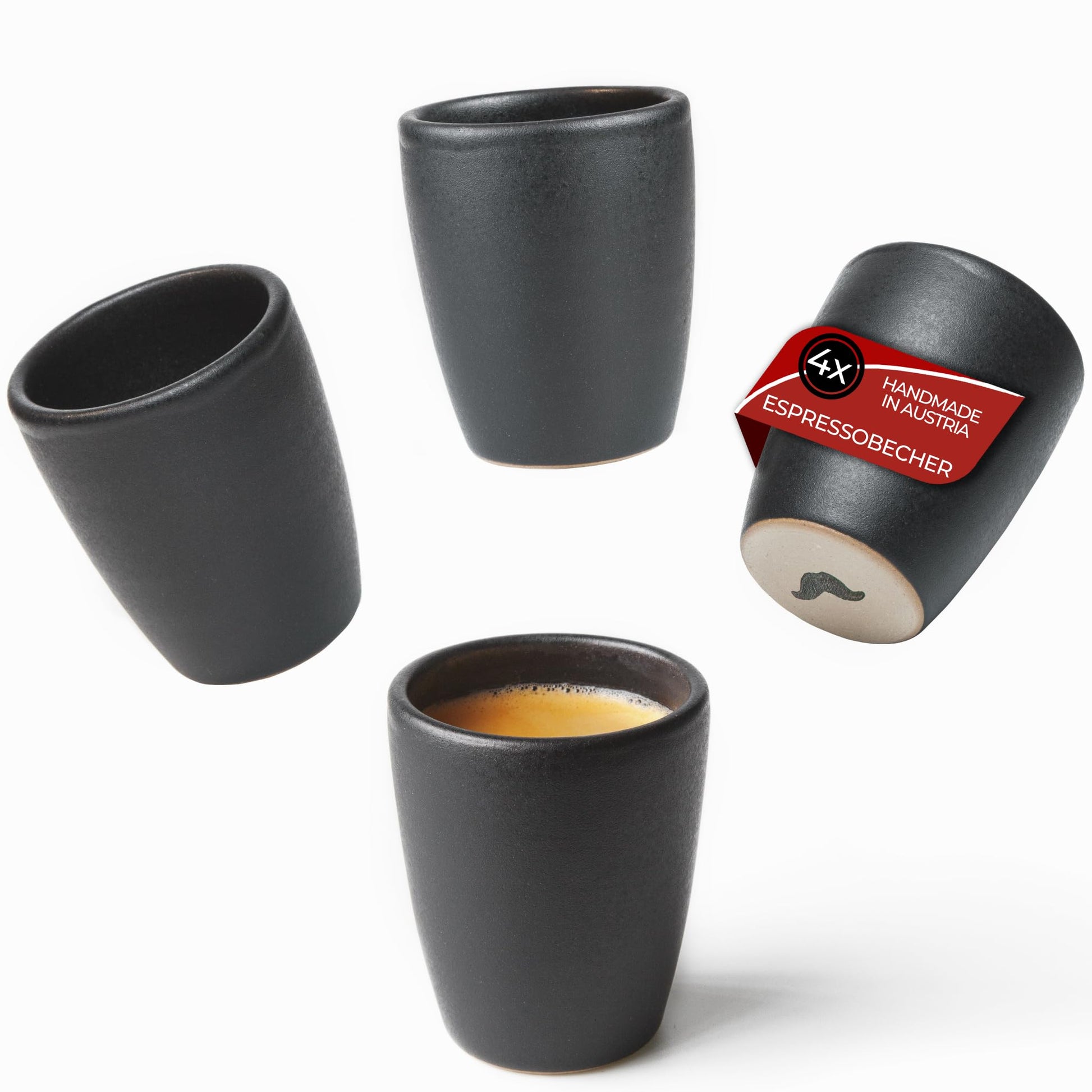 Set of 4 espresso cups - handmade in Austria - perfect for espresso - 80ml - matt black