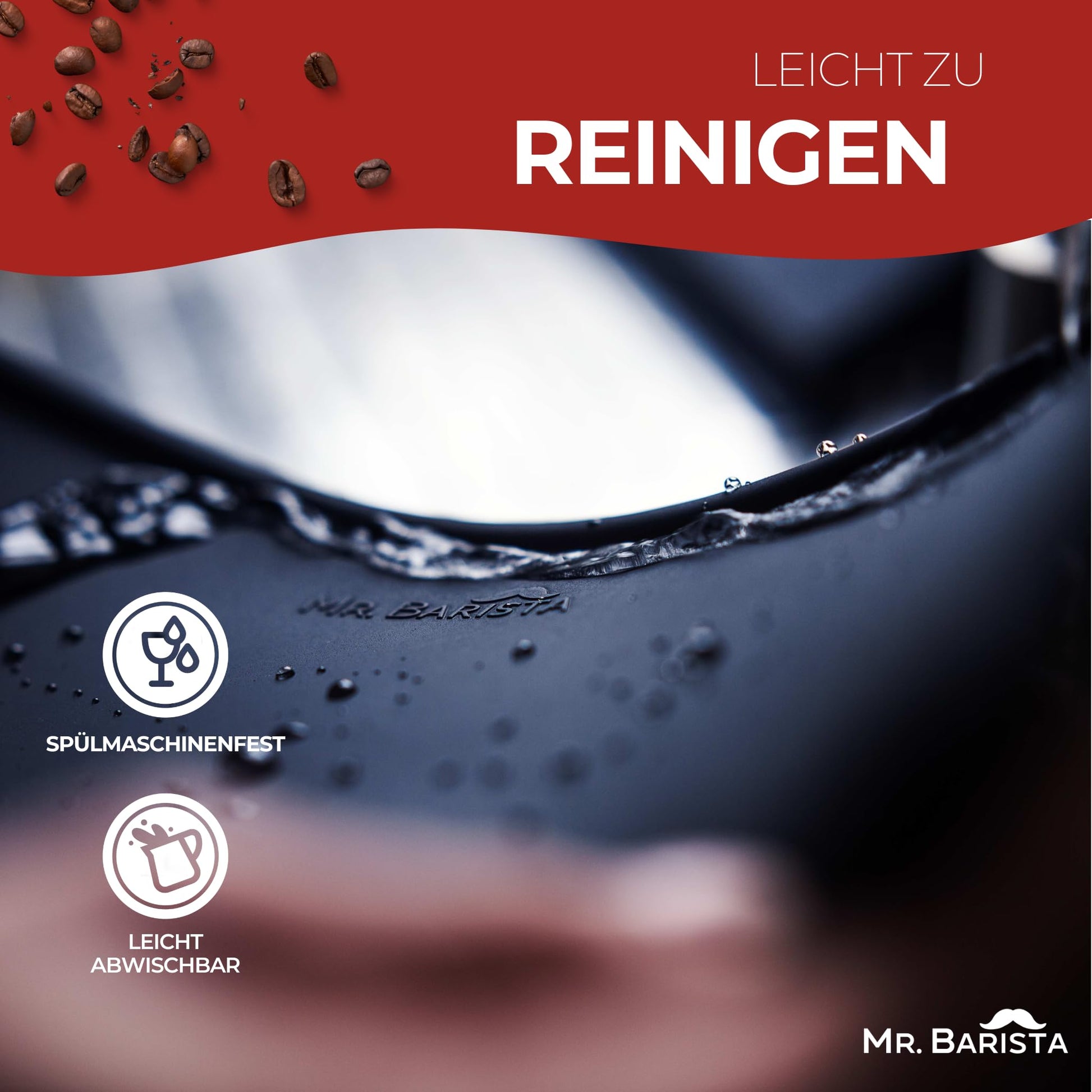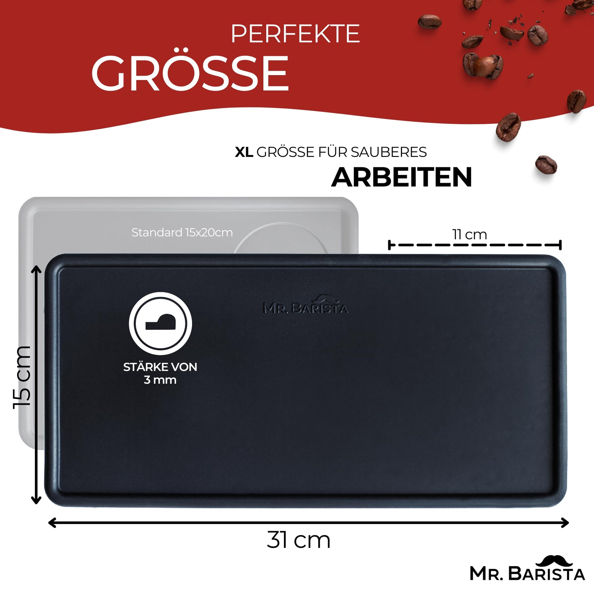 You get a practical, durable and heat-resistant silicone mat with a non-stick coating. Whether for your coffee tamper, milk jug, portafilter or other coffee tools - the Mr. Barista silicone mat protects your work surface from pressure marks or possible damage caused by water and heat. The silicone mat is 31cm long, 15cm wide and 0.7cm high - so it offers enough space to efficiently prepare your coffee on the mat or to put down your coffee accessories.
